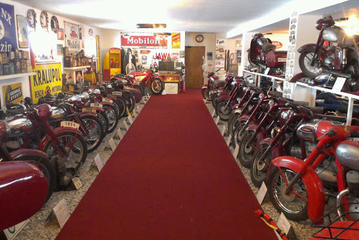 The Jawa Museum Rabakov is divided into two separate exhibitions. The first exhibition located in the main building contains a basic comprehensive line from 1929 to 2014. You can see the first motorcycle manufactured under license Janeček - Wanderer, then "how time went" pre-war motorcycles, various types of rockers, police and military motorcycles, motorcycles designed for driving school, Velorex cars and more. The exhibition also includes hundreds of period advertisements, old oil cans and other items associated with motoring in the past. A second exhibition is shown adjacent to the main building. It is divided into two smaller parts - one features scooters, moped etc, the second shows home-made creations utilizing Jawa parts.