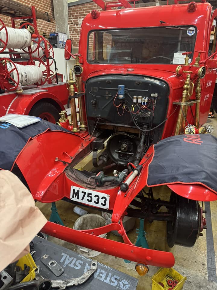 Museum of local firefighters with a few classic fire engines. A covered fire engine, Ford 1931 called ”Puckelen”. Two open