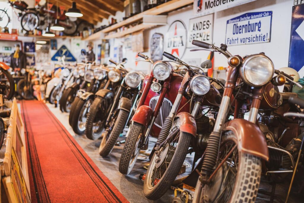 Jörg Schulich’s private motorcycle collection, showing bikes made between the 1930s and 1970s.